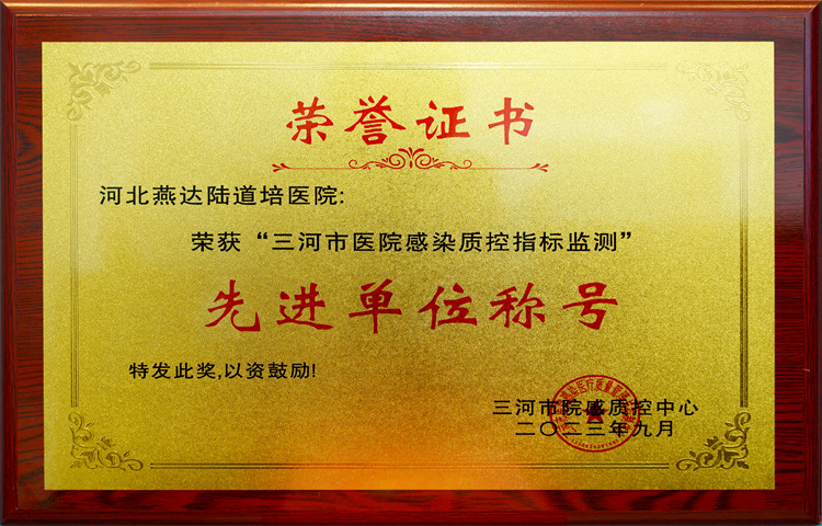 河北燕達(dá)陸道培醫(yī)院榮獲“三河市醫(yī)院感染質(zhì)控指標(biāo)監(jiān)測”先進(jìn)單位稱號。