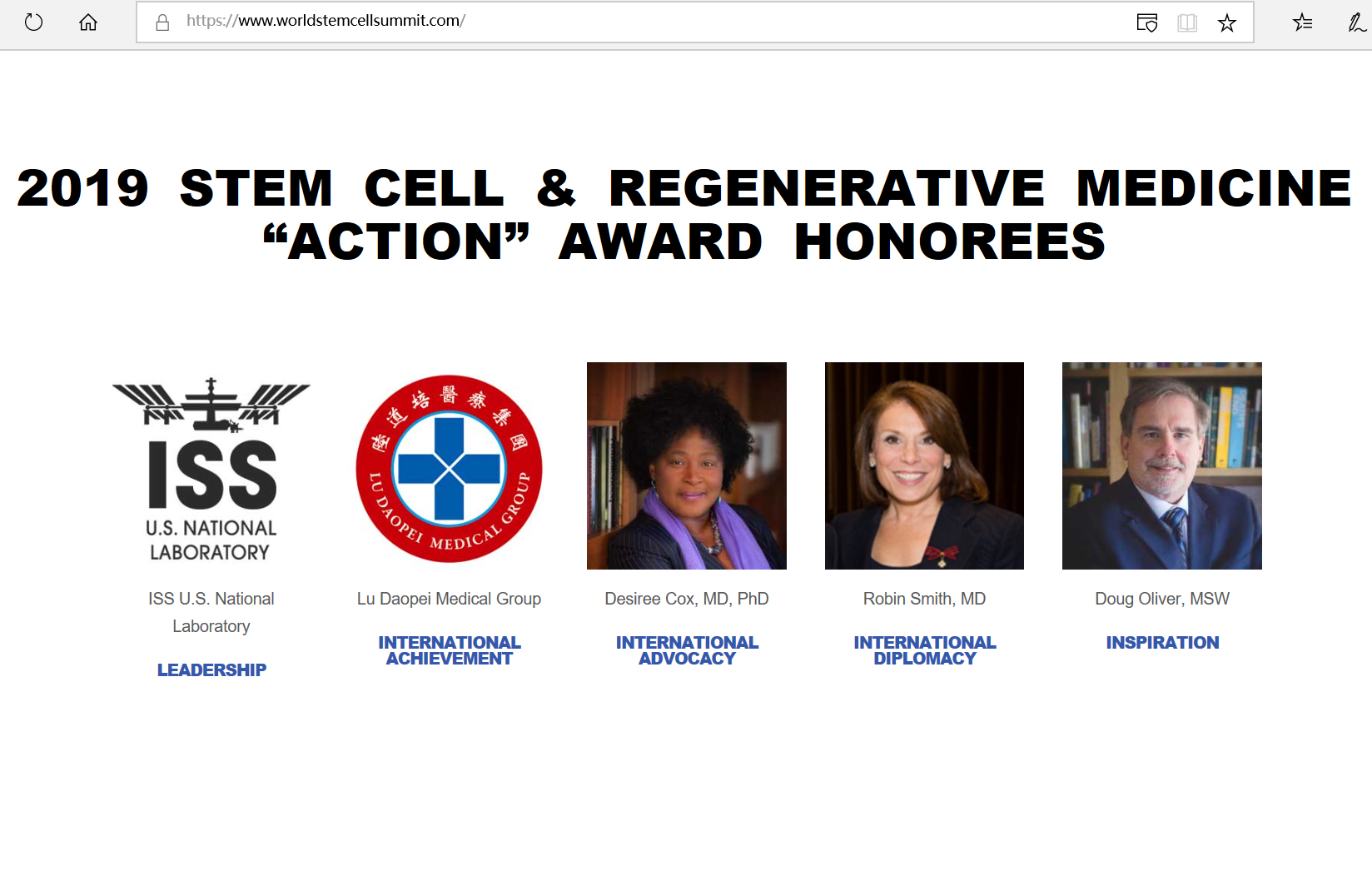 國(guó)際再生醫(yī)學(xué)基金會(huì)(RMF)宣布2019年“干細(xì)胞和再生醫(yī)學(xué)行動(dòng)獎(jiǎng)”5家/位獲獎(jiǎng)?wù)摺懙琅噌t(yī)療集團(tuán)獲得唯一的2019國(guó)際成就獎(jiǎng)。 【詳情】