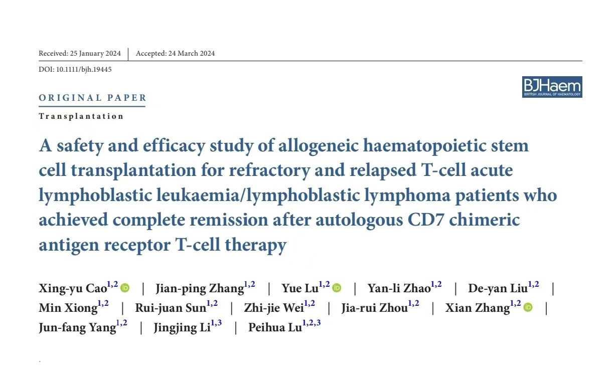 此項(xiàng)研究聚焦于R/R T-ALL和T- LBL患者在接受自體CD7 CAR-T治療獲得完全緩解后,橋接異基因造血干細(xì)胞移植的安全性與有效性。 【詳情】