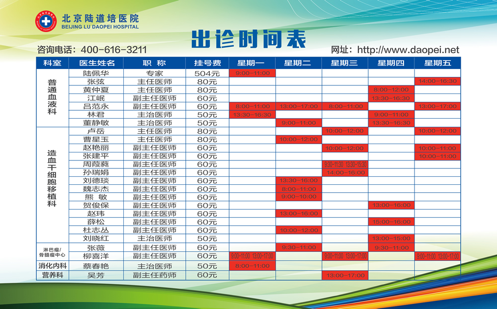 非以上出診時(shí)間特需:主任醫(yī)師304元、副主任醫(yī)師104元。
