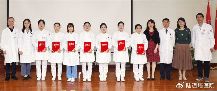王景文副院長宣讀了優(yōu)秀護士名單。黃曉燕院長、王景文副院長、孫于謙主任、唐菲菲主任、趙薇主任、范占明主任為優(yōu)秀護士頒獎并合影留念。