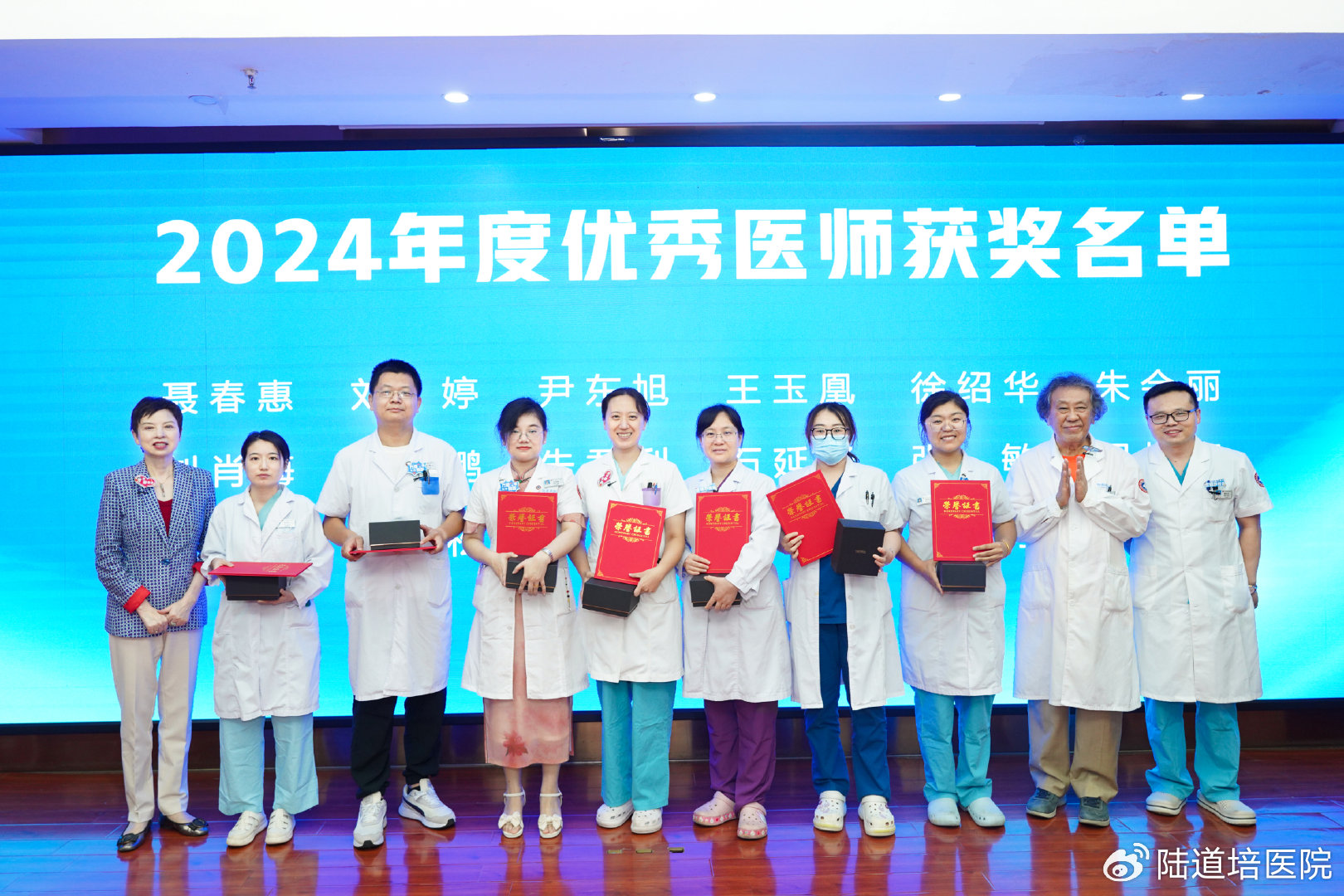 隨后,醫(yī)務(wù)部主任趙薇宣布了2024年優(yōu)秀醫(yī)師獲獎(jiǎng)名單,并由黃曉燕院長、王景文院長、孫于謙主任頒發(fā)了證書和獎(jiǎng)品。