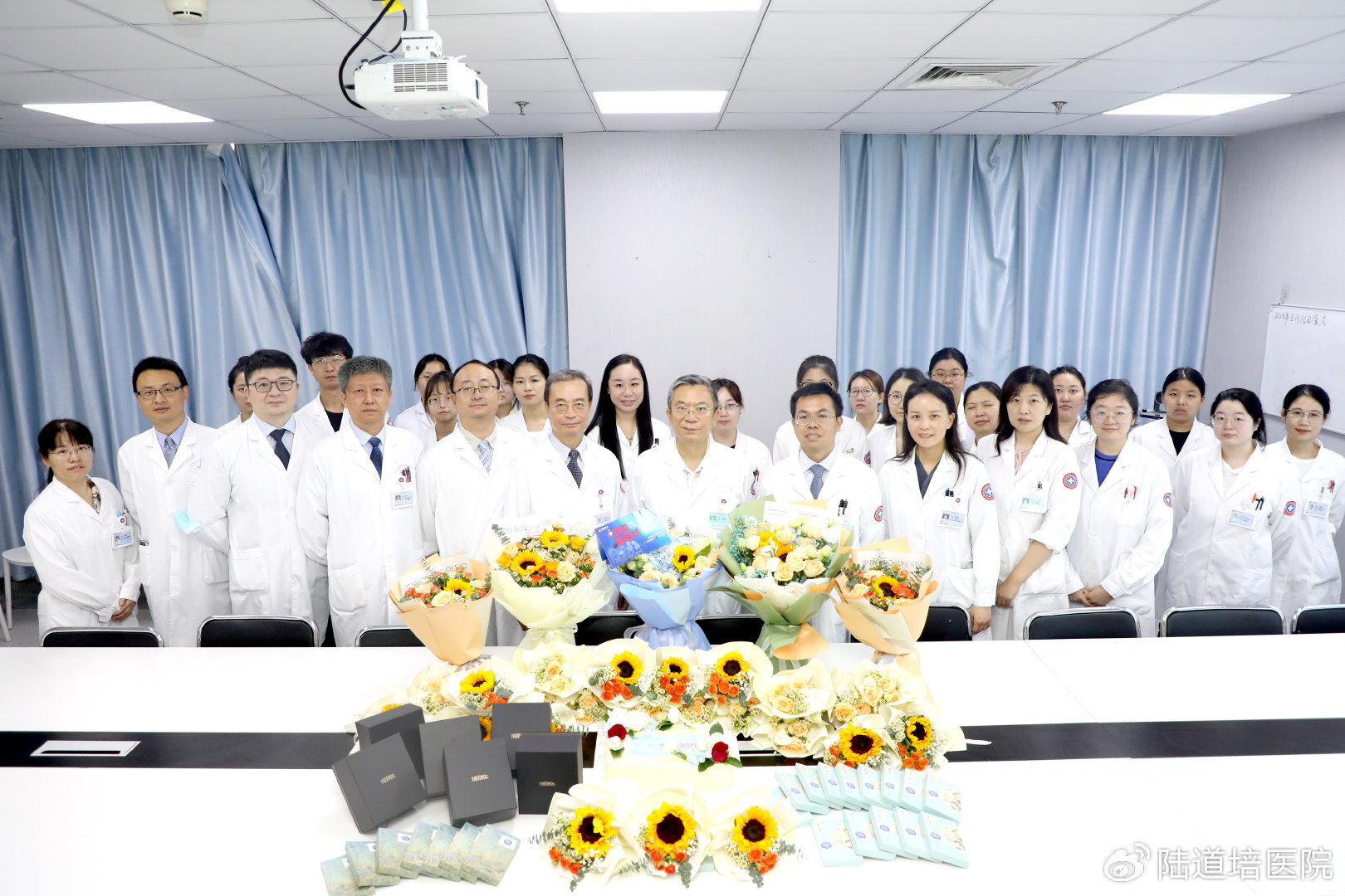 會(huì)議結(jié)束后,順義院區(qū)醫(yī)務(wù)部主任趙薇、醫(yī)院辦公室主任鄭偉、宣傳部主任白佳瓚等走入病區(qū)(科室),送去鮮花、蛋糕和節(jié)日禮物,表達(dá)了對(duì)全體醫(yī)師崇高的敬意和親切的問候。