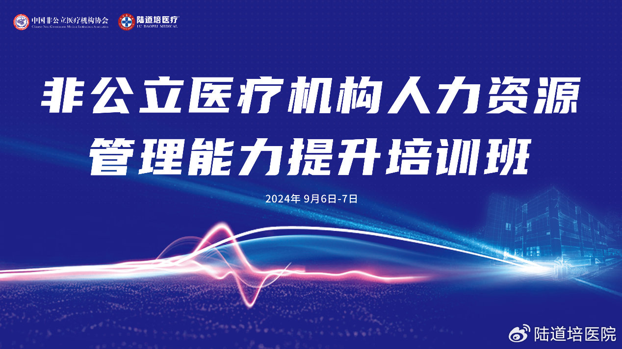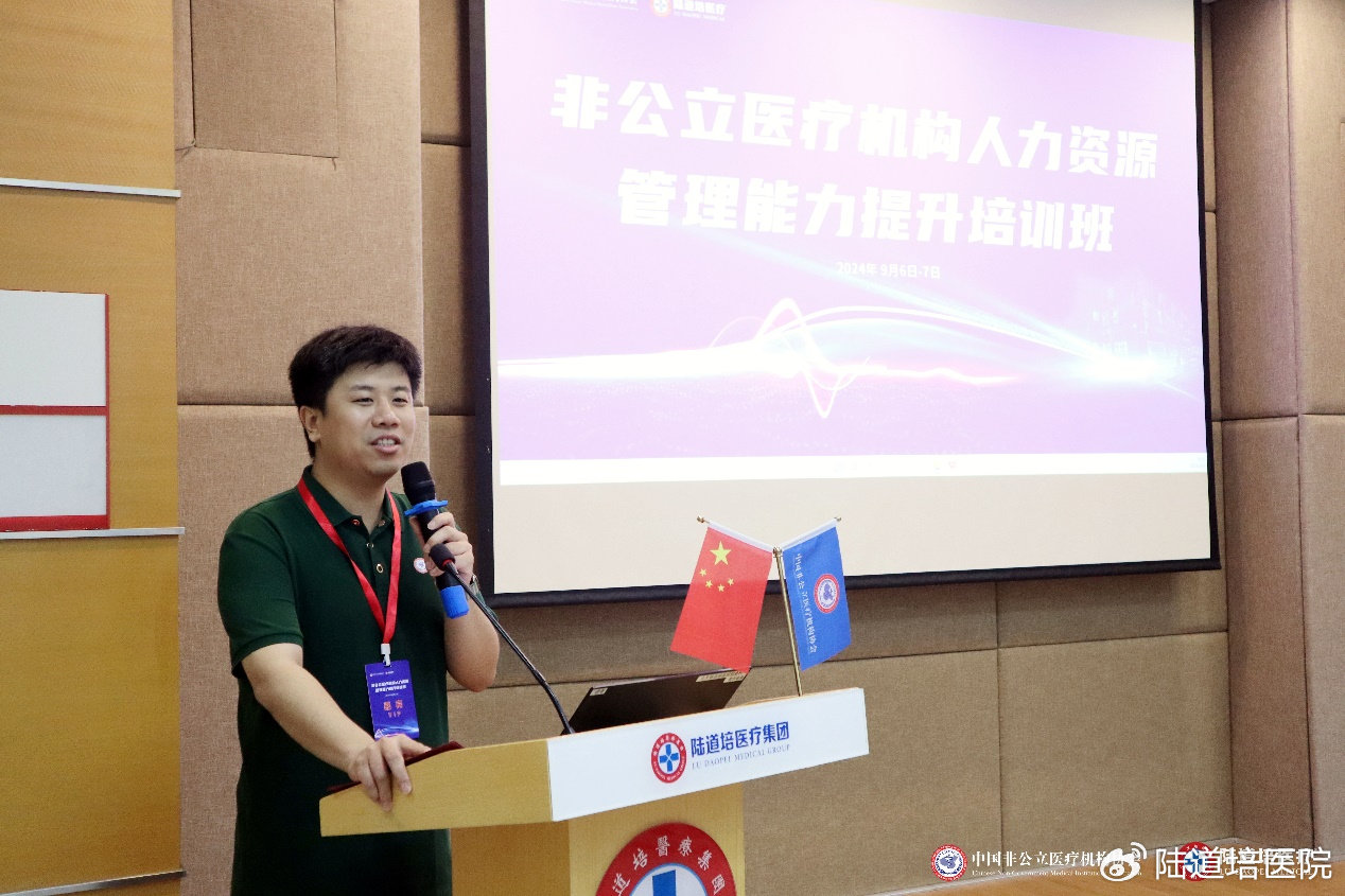 為加強行業(yè)人才鏈建設(shè),進(jìn)一步推動我國非公立醫(yī)療機構(gòu)人力資源管理的專業(yè)化、精細(xì)化進(jìn)程,提升行業(yè)整體人才管理水平與招聘效率,構(gòu)建高效、穩(wěn)定、可持續(xù)發(fā)展的人才梯隊,2024年9月6日-7日,由中國非公立醫(yī)療機構(gòu)協(xié)會主辦,陸道培醫(yī)療集團(tuán)承辦,丁香人才提供媒體支持的非公立醫(yī)療機構(gòu)人力資源管理能力提升培訓(xùn)班在北京陸道培醫(yī)院順利召開。北京陸道培醫(yī)院運營執(zhí)行院長陸鳴岡、陸道培醫(yī)療集團(tuán)副總裁/運營總監(jiān)趙奕參加會議并致辭。