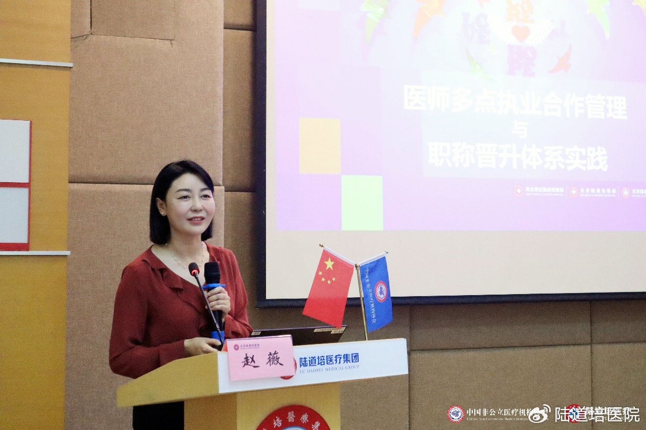 陸道培醫(yī)療集團(tuán)(三院區(qū))醫(yī)務(wù)部主任趙薇就《醫(yī)師多點執(zhí)業(yè)合作管理與職稱晉升體系實踐》進(jìn)行授課。