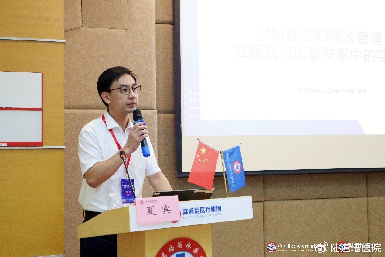 首醫(yī)三博腦科醫(yī)院副院長夏賓就《學(xué)科建設(shè)和績效管理在醫(yī)院高質(zhì)量發(fā)展中的實踐》進(jìn)行授課。