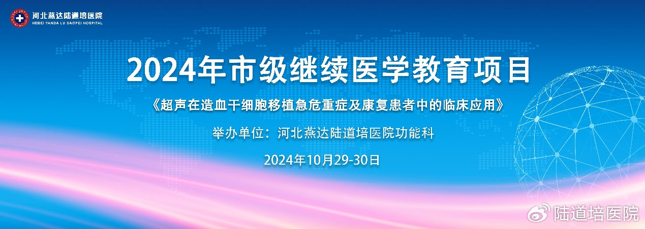 10月29-30日,由燕達(dá)陸道培醫(yī)院功能檢查科承辦的2024年市級(jí)繼續(xù)醫(yī)學(xué)教育項(xiàng)目——“超聲在造血干細(xì)胞移植急危重癥及康復(fù)患者中的臨床應(yīng)用”在6號(hào)樓會(huì)議室如期舉行。本次繼續(xù)教育的主題是當(dāng)前醫(yī)學(xué)研究的熱點(diǎn),也是臨床實(shí)踐中的難點(diǎn)。它涉及到的不僅是技術(shù)層面的精進(jìn),更是對(duì)患者全面康復(fù)的深刻探索。來(lái)自臨床一線(xiàn)的100多名醫(yī)生參加為期兩天的培訓(xùn)。